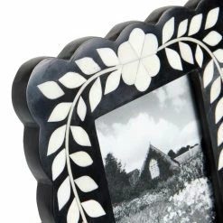 World Market Black and White Scalloped Floral Inlay Bone Frame