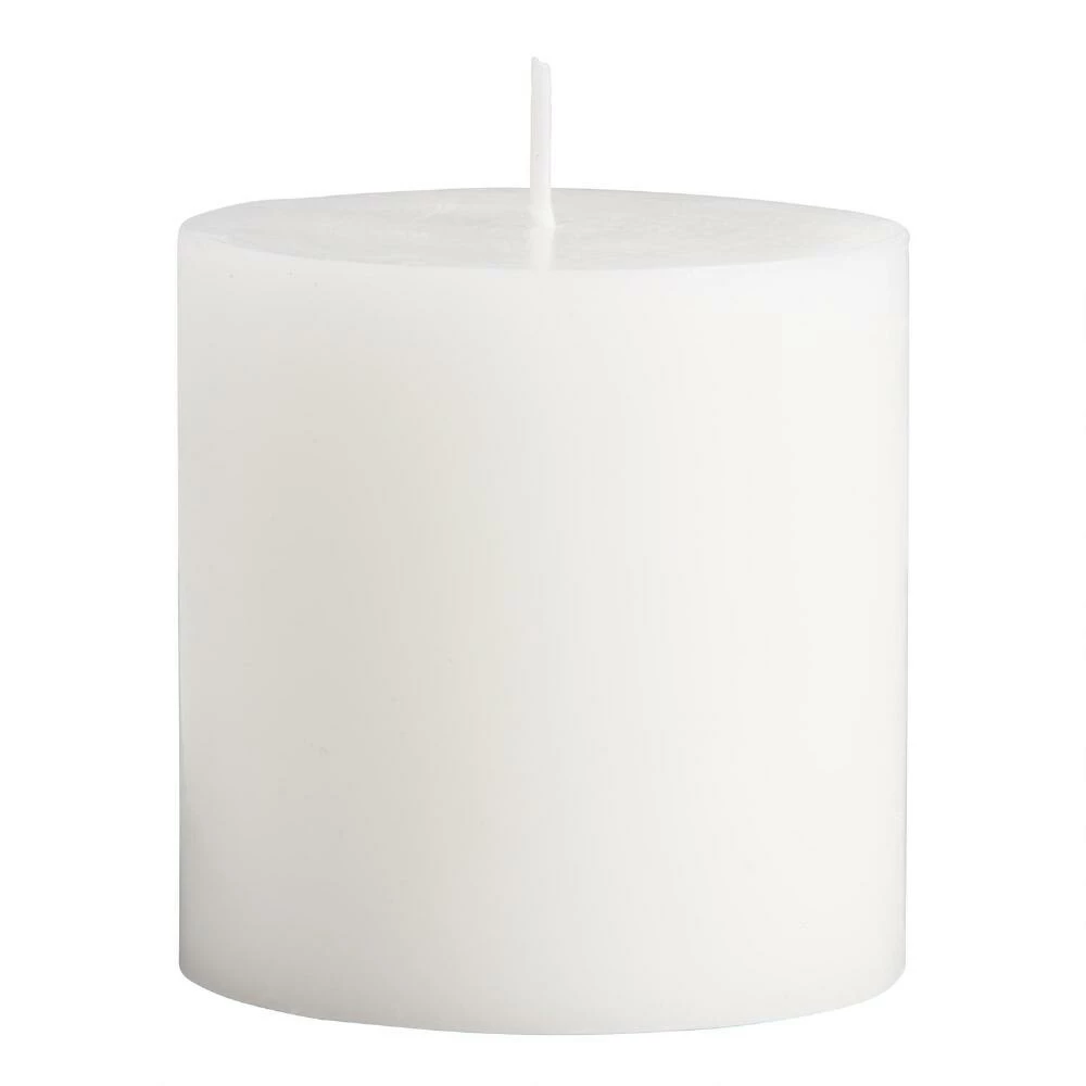 Create a dramatic scene lit by flickering candlelight with our clean and classic white pillar candle. Versatile and fragrance-free, this wax pillar adds simple elegance to any space.