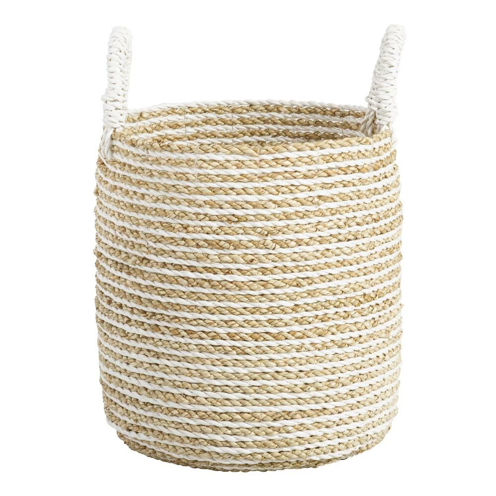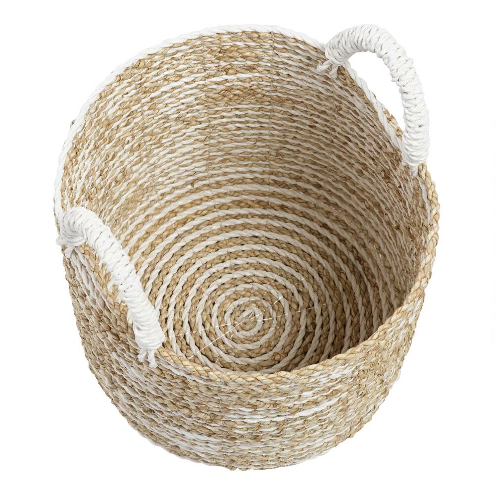 Charming form meets handy function in our small Bianca basket, handwoven in Indonesia of seagrass in a chic white and natural striped design.