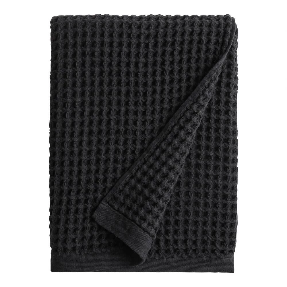 Experience spa-like luxury in the comfort of your home with our exclusive black cotton waffle-weave bath towel. It has a soft touch and adds a sophisticated and modern look to any washroom. It’s also the perfect thing for removing makeup – no mascara streaks!