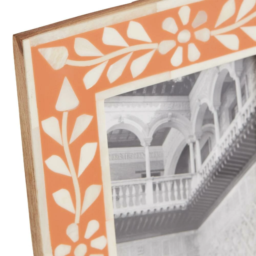 In a blush pink hue, our exclusive 4×6 frame is decorated with an intricate white floral inlay. Handcrafted by skilled artisans of sustainably sourced bone, this frame lends a hint of color and botanical-inspired beauty to any tabletop display.