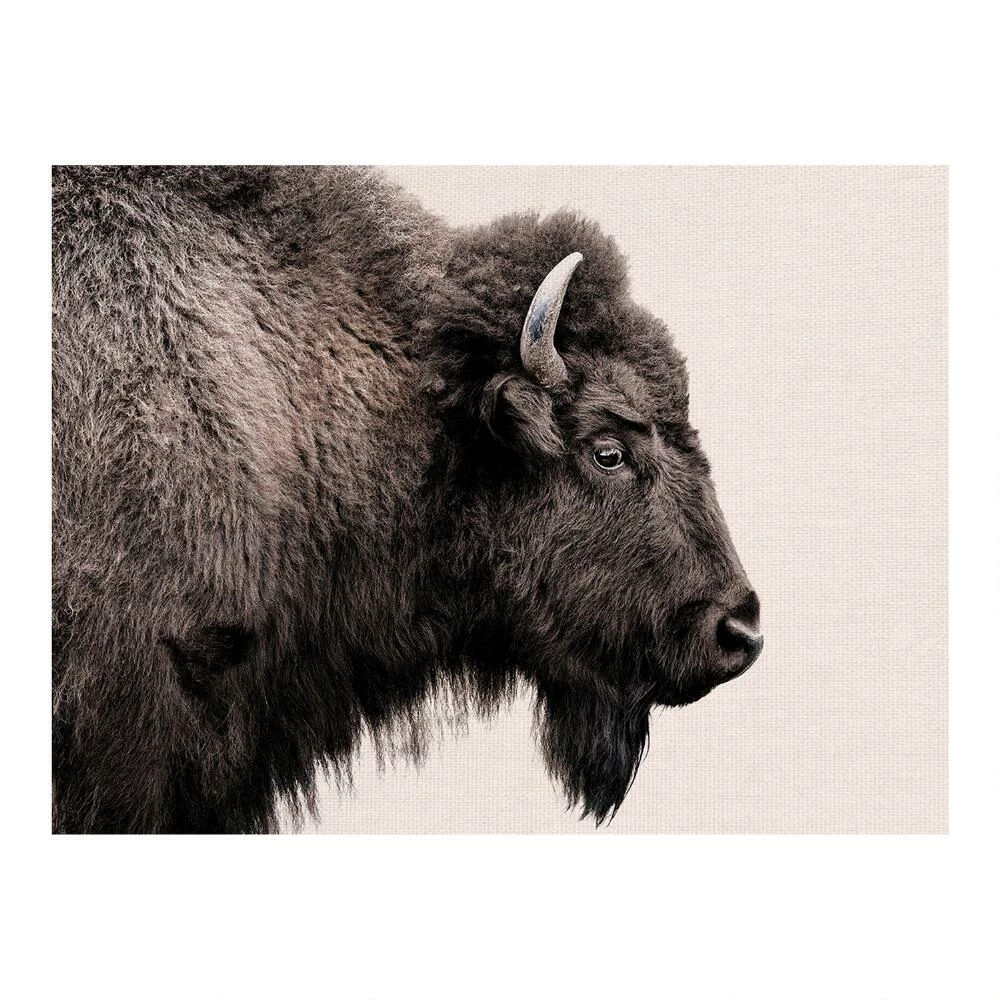 Our buffalo canvas wall art brings a wild touch to any room you choose. Its versatile grayscale palette draws attention to every stunning, scruffy detail on this beautiful beast’s profile. This photograph wall decor is gallery-wrapped so the image covers all the exposed sides, adding to the rich visual impact of the piece.