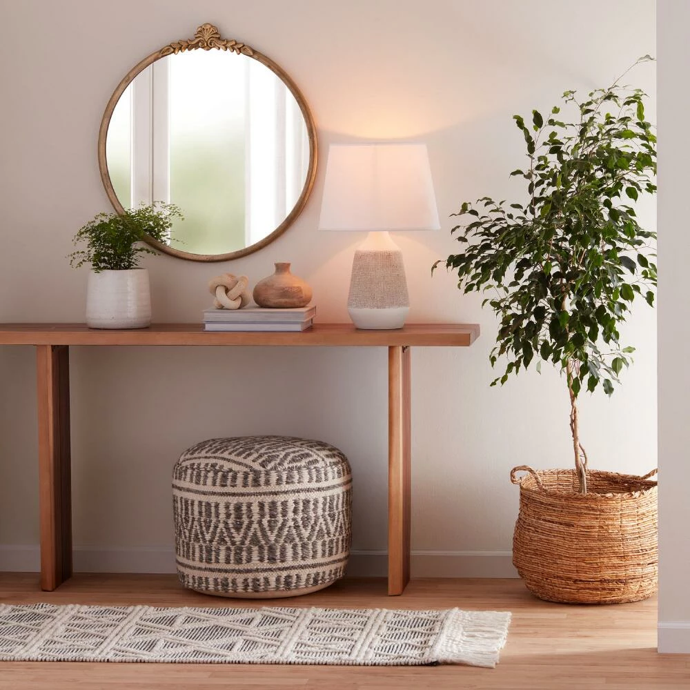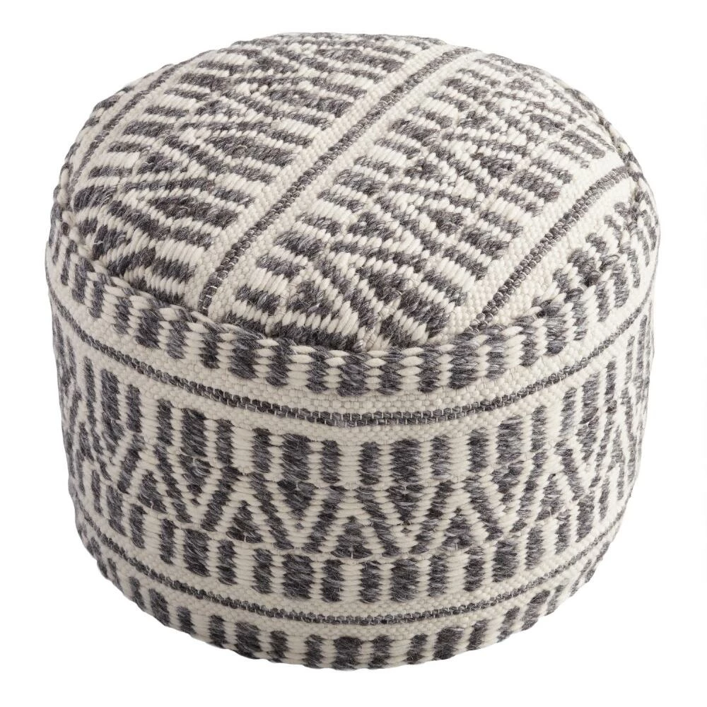 Our exclusive floor pouf features a textured charcoal gray and ivory color scheme. This sturdy cushion is ideal for distinguishing small spaces or adding an extra seat for guests without taking up too much floor space.