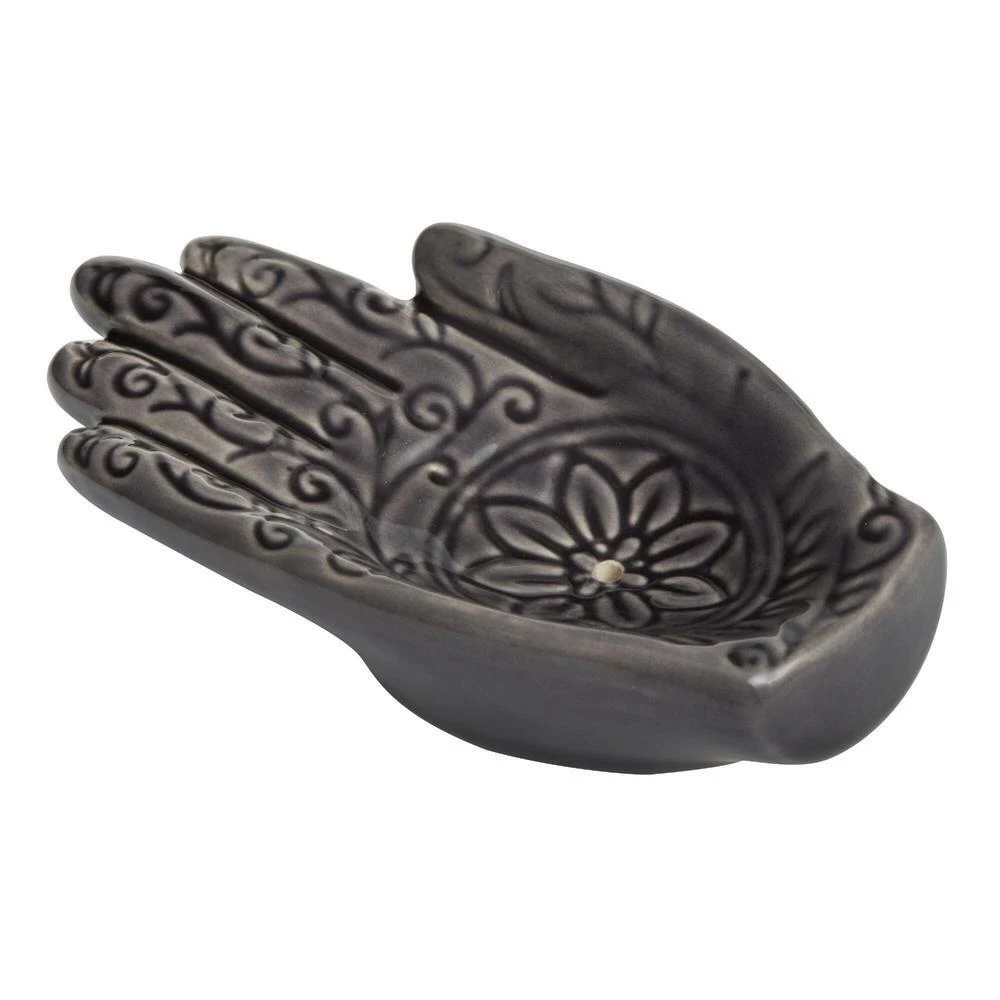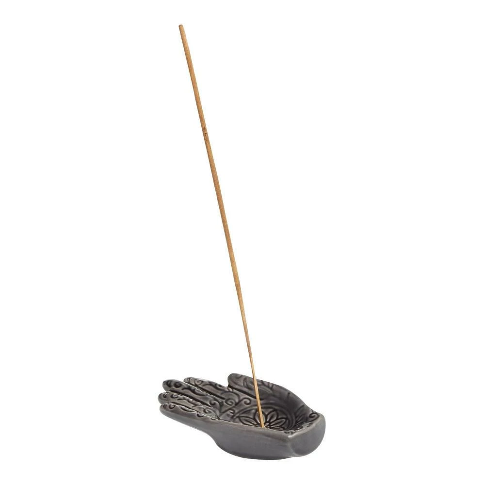 Handcrafted in the form of a decorative hamsa hand, a recognized sign of protection across many cultures in the Middle East and North Africa, our incense burner is made of ceramic with a lovely charcoal reactive-glaze finish. Place it on any accent table or shelf to bring beautiful aromas and a distinct global vibe to your room.