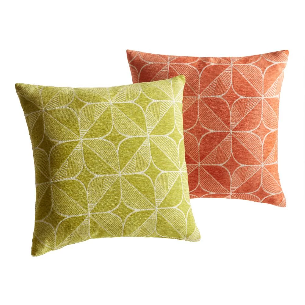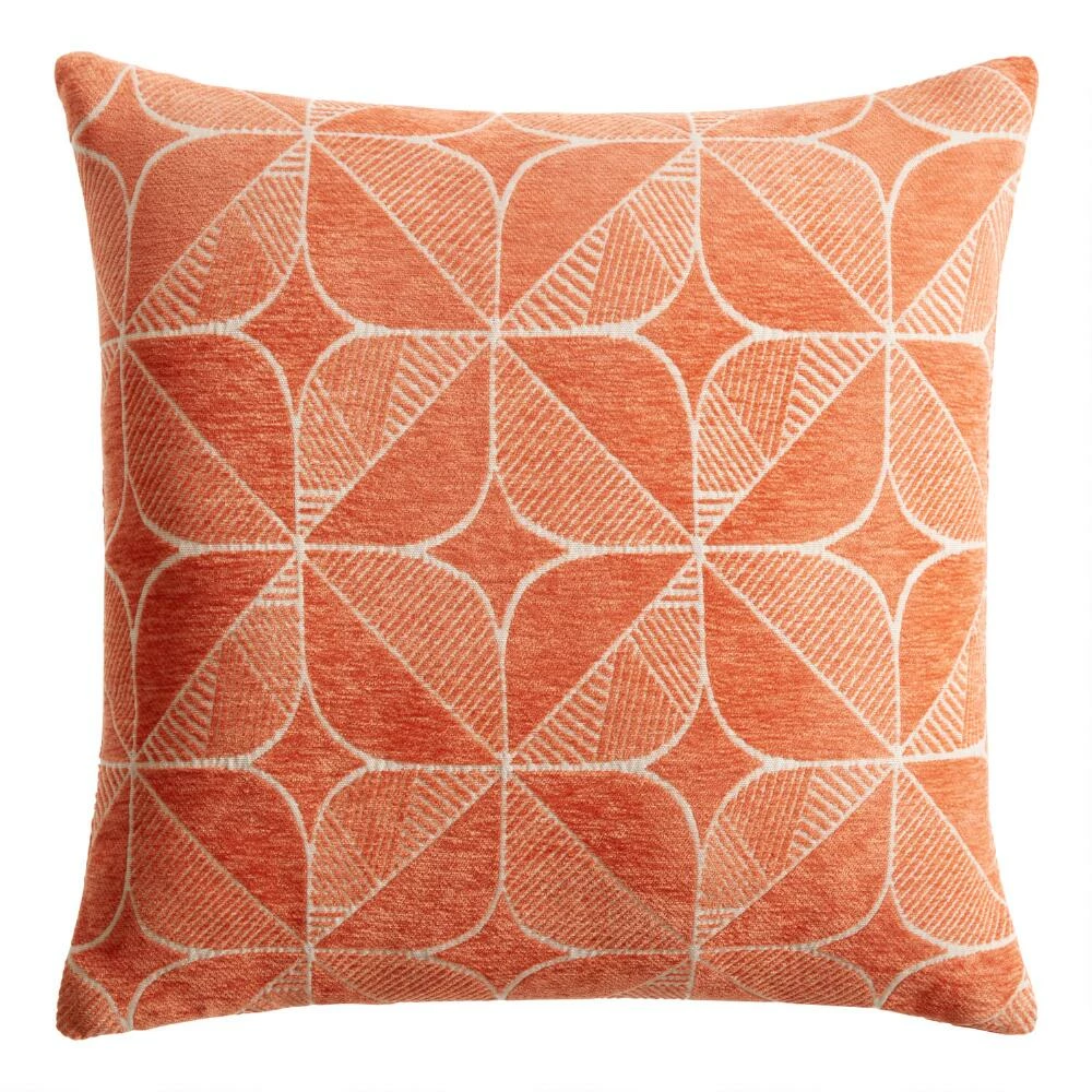 Welcome cozy style into your home with our exclusive chenille throw pillow. Made with a playful, minimalist Scandinavian-style geo floral pattern in your choice of bold colors, this toss pillow is an excellent addition to any boho or mid-mod home decor. It complements an array of our other pillows and comes complete with a removable insert.