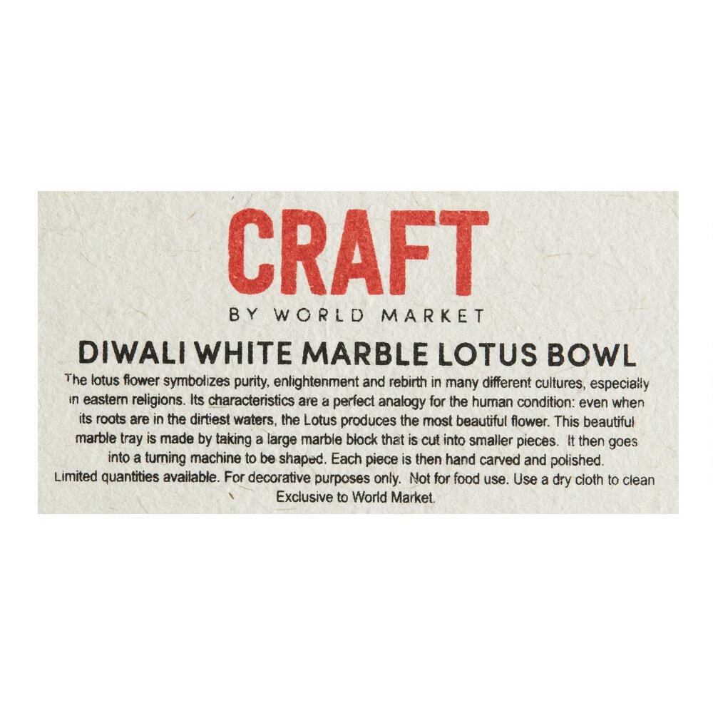 In a layered lotus shape, our decorative bowl is made of solid white marble. A festive addition to Diwali, a five-day celebration in India and across the globe that rejoices in the triumph of light over dark, this tealight holder is handmade in Rajasthan, India. Handcrafted in global artisan communities and available in limited quantities, our one-of-a-kind CRAFT pieces bring heirloom-quality style to your home.