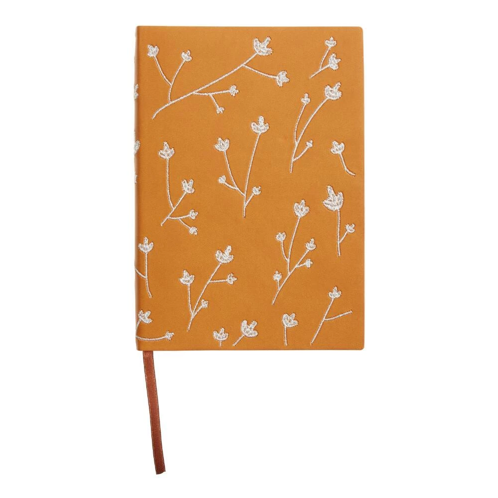 With a warm orange cover embroidered with delicate flower stems, this vegan-leather journal from Denik is a pretty place to keep your written thoughts. It has a satin ribbon that lets you mark your place and pick up right where you left off and is designed to lay flat for easy jotting. Denik dedicates a portion of each sale to a fund that builds schools all over the world.