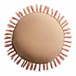Cozy up in comfort with this extra-long lumber pillow that brings modern global style to your seating area. Inspired by traditional Mexican motifs, the striking geometric design features cool-toned blue and teal stripes on an ivory ground and embroidered diamonds in coral and rust. Made with an innovative process that puts recycled water bottles to good use, it’s finished with a solid ivory back, while fluffy tassels complete its inviting vibe.
