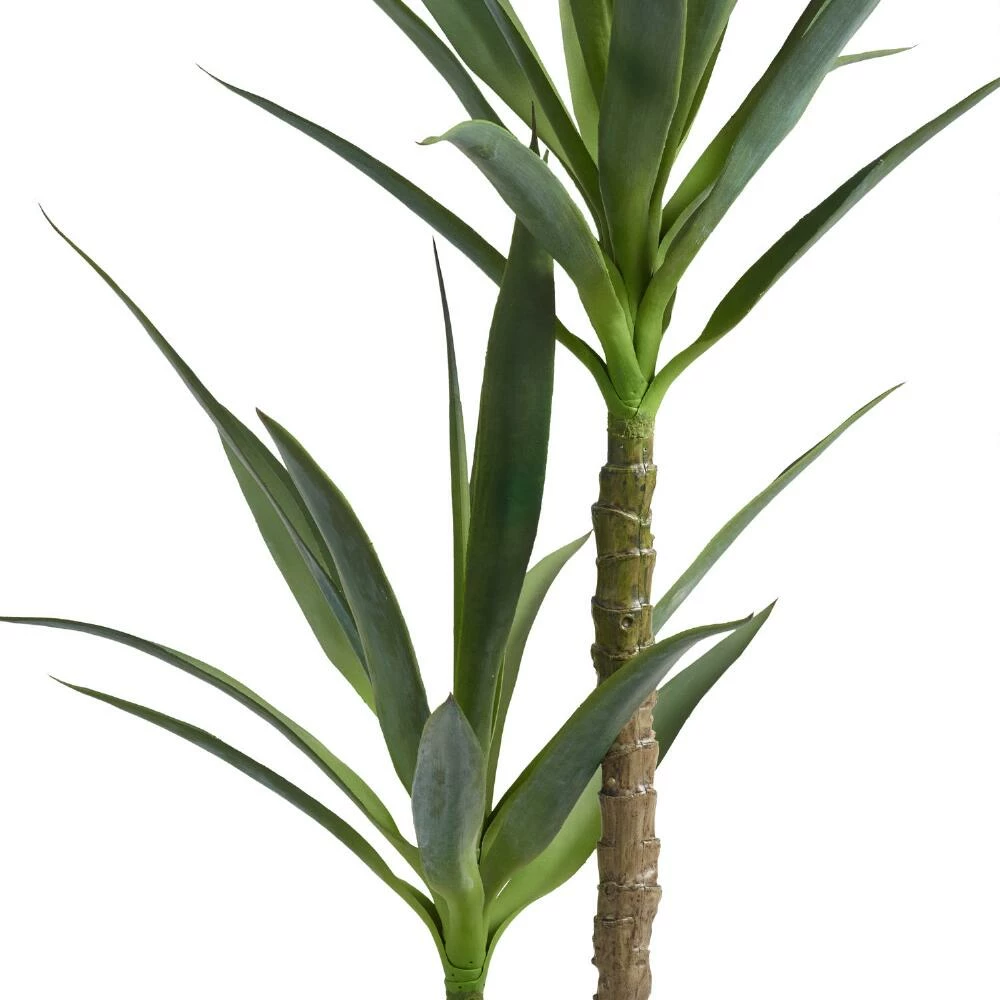 Featuring two realistic stalks topped with spiky evergreen leaves, this artificial yucca tree boasts a bold silhouette and effortless desert flair. In a simple weighted stand that’s ready to drop into the basket or pot of your choice, this fake tree is easy to style and even easier to care for.