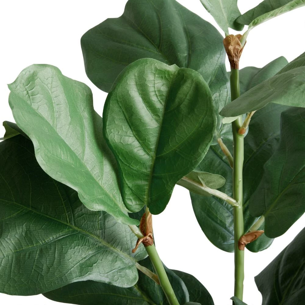 Lend on-trend style to your space with the lush green color and distinctive silhouette of our 5-foot artificial fiddle-leaf fig tree. Handcrafted to mimic the broad, richly veined leaves of the real thing, this gorgeous fake brings fresh texture to any room. Drop its versatile black base into any basket or pot for an irresistible decor addition.