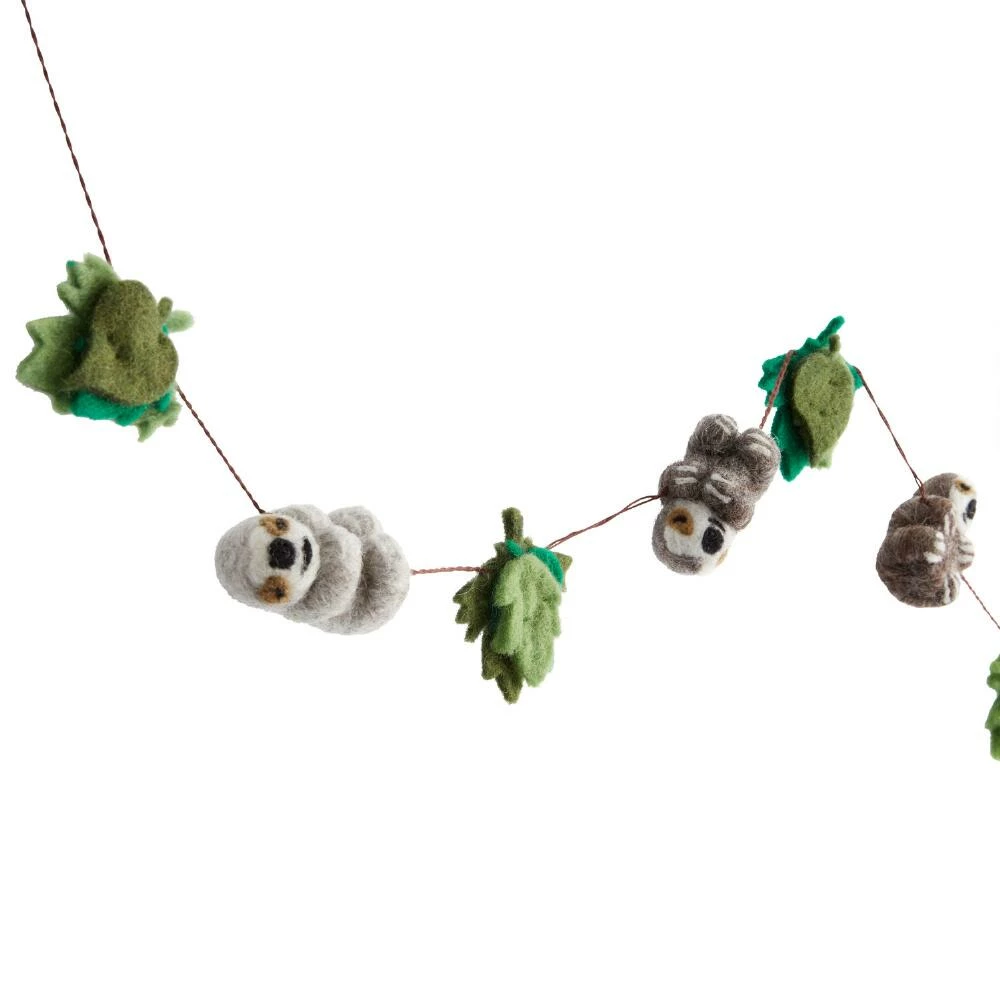 Seven sweet, snuggly sloths hang along this adorable garland, accented with clusters of lush green leaves. Each element is individually crafted in Nepal from soft felted sheep’s wool and sewn together by hand. As a whimsical touch in the kitchen or office or a cozy accent for kids’ rooms, it’s full of homespun charm.