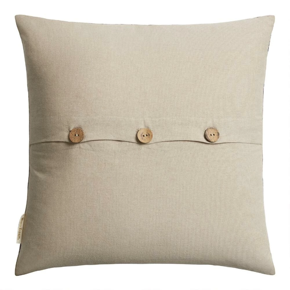 This stunning throw pillow is adorned with a dainty floral design in blue and teal or gold and rust with a beautiful wood-button closure on the back. The tradition of block printing is an intricate process Indian artisans have been perfecting since the 12th century. A design is hand-drawn and carved into a wooden block, then dipped in dye and stamped carefully on stretched, hand-dyed fabric. Each one-of-a-kind piece is a unique work of art.