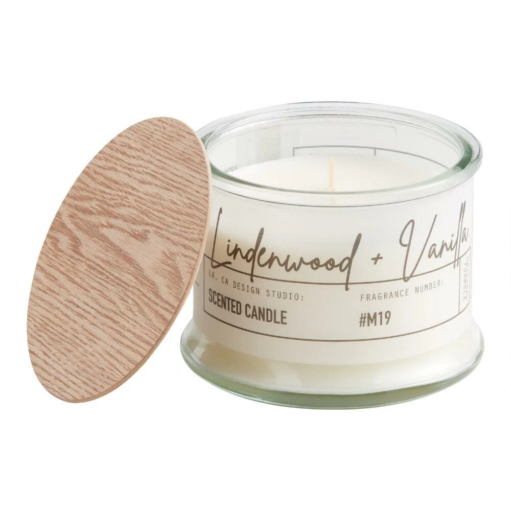 Pull off a minimalist modern-farmhouse vibe with help from our scented candle, hand-poured into a shapely frosted-glass vessel. Complete with handwritten-style label and wood lid, its uplifting Lindenwood and Vanilla fragrance features refreshing notes of eucalyptus leaf, nutmeg, lindenwood and tonka bean with a base of patchouli, cedarwood and oakmoss. Two wicks help disperse the mood-boosting aromas around your room.