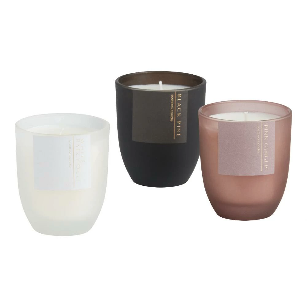 Our petite hand-poured scented candle is presented in a frosted glass vessel that makes an attractive statement on your mantel, console table, or bookshelf. Choose from Black Pine’s notes of balsamic fir and fresh-cut spruce, White Patchouli’s notes of blackcurrant, woodland berry and golden honey and Pink Ginger’s notes of Himalayan cedar and musk.