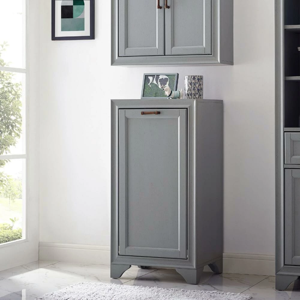 Finished in gray or white with a sleek antique-bronze handle, our classic wooden hamper keeps laundry and dirty clothes hidden from sight. The pull-down door opens up to reveal a removable linen bag that’s simple to care for and the hamper’s good looks blend into your bathroom or bedroom easily.