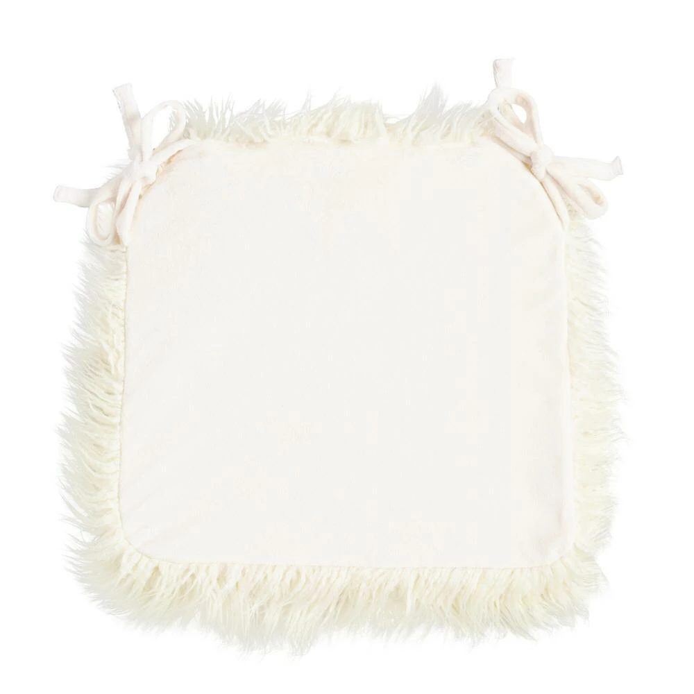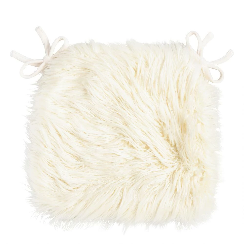 Our plush ivory-toned faux fur chair cushion draws its inspiration from traditional Mongolian sheep’s wool textiles. Crafted with softness, comfort and boutique-chic looks in mind, this cushion with dual ties makes a luxurious addition to a dining or office chair.