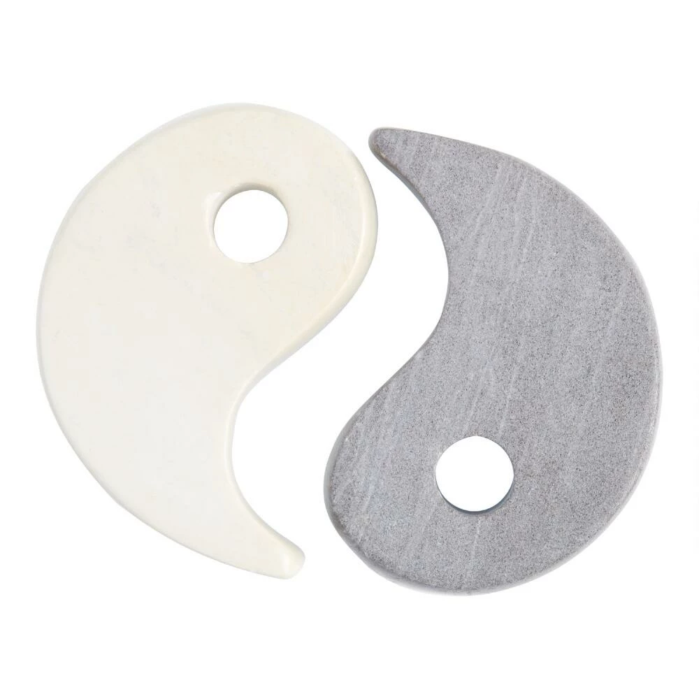 This elegantly composed object is inspired by the ancient philosophy of yin-yang, in which two natural forces are shown to be complementary and interconnected. Carved in Kenya from local Kisii soapstone, its bold contrasting colors and smooth texture bring welcome balance to your desktop or dresser.