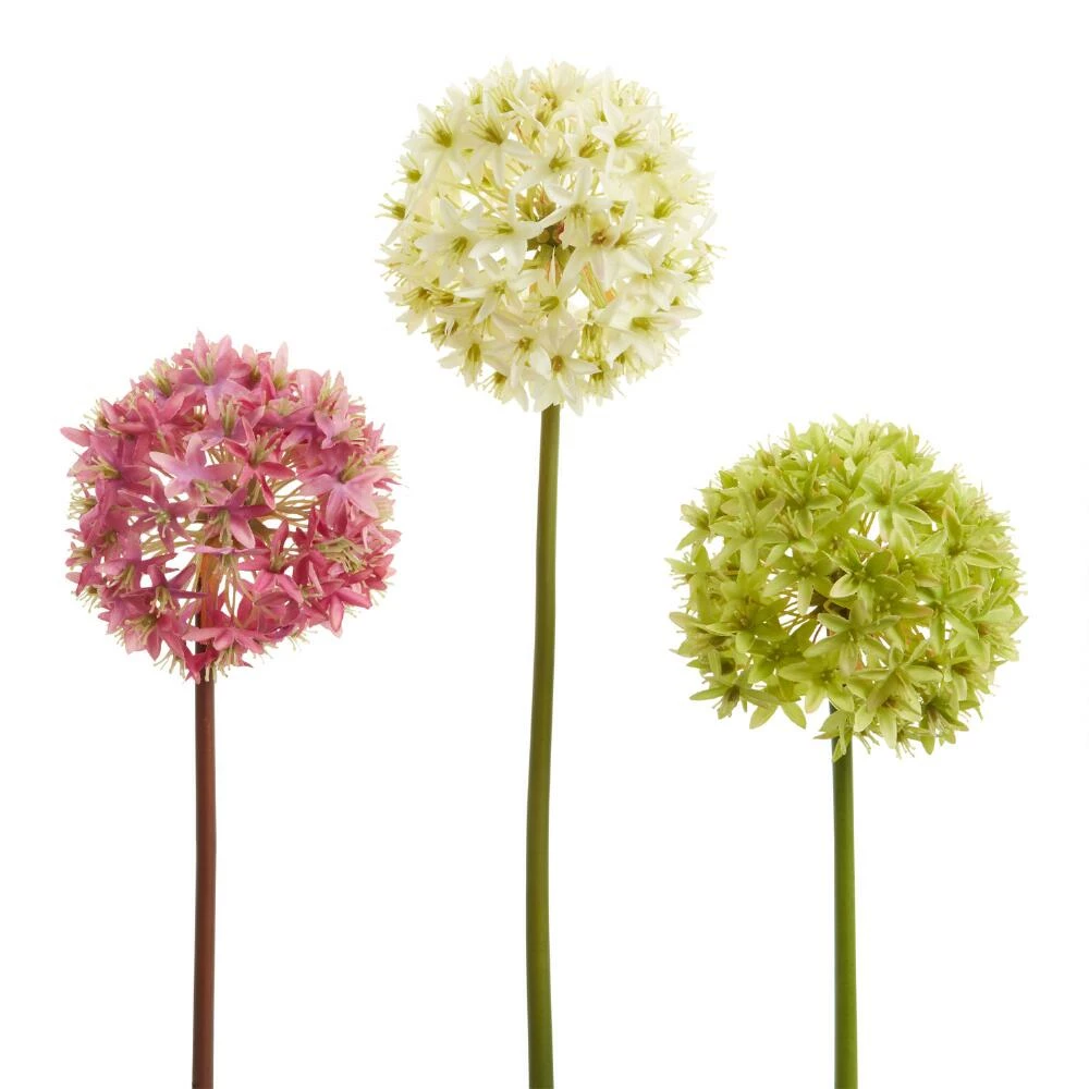 Topped with a broad, puff-ball-shaped bloom, this artificial allium stem makes a cheerful statement. The fabulous fake is handcrafted for realistic detail and available in rosy fuchsia, creamy white and pale green. Standing tall in its own vase or tucked into a larger arrangement, it’s a fresh way to accent your home for spring.