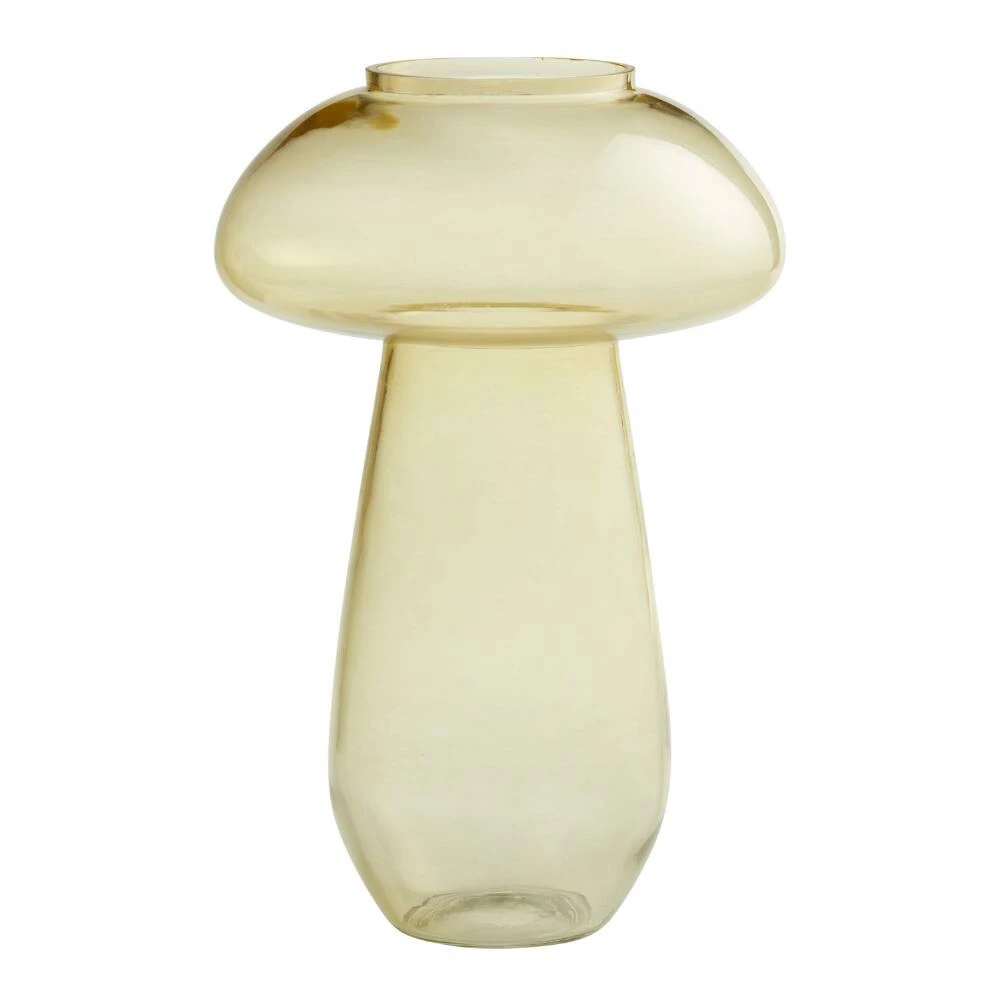 A whimsical decor choice, our exclusive large mushroom vase is mouth-blown by artisans in India to ensure each piece is perfectly unique. This on-trend toadstool in a light amber hue brings forest-inspired fun to any table or shelf whether displayed empty or filled with seasonal florals.