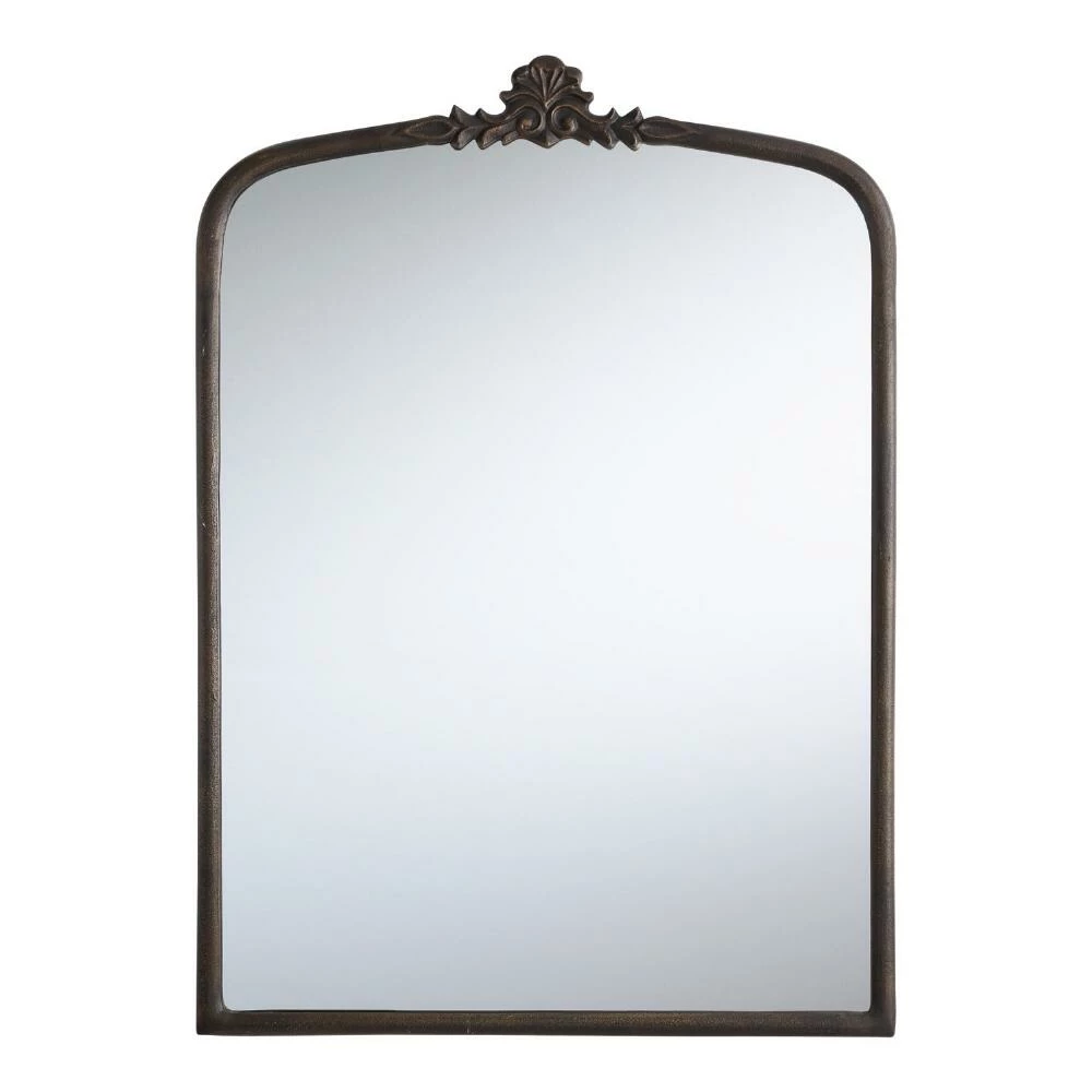 A scrolling vintage-inspired floral detail creates an air of elegance on our exclusive vanity mirror. Available in bronze or brass finishes, this wall mirror adds antique charm when hung above a bedroom vanity table, bathroom sink or mantel. Allow this stunning, statement-making piece to enlarge any space and express your classic style.