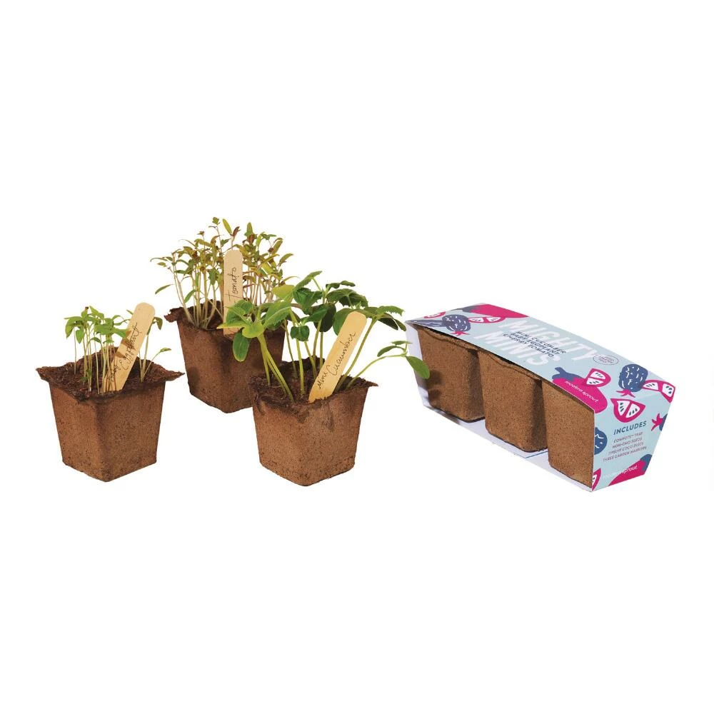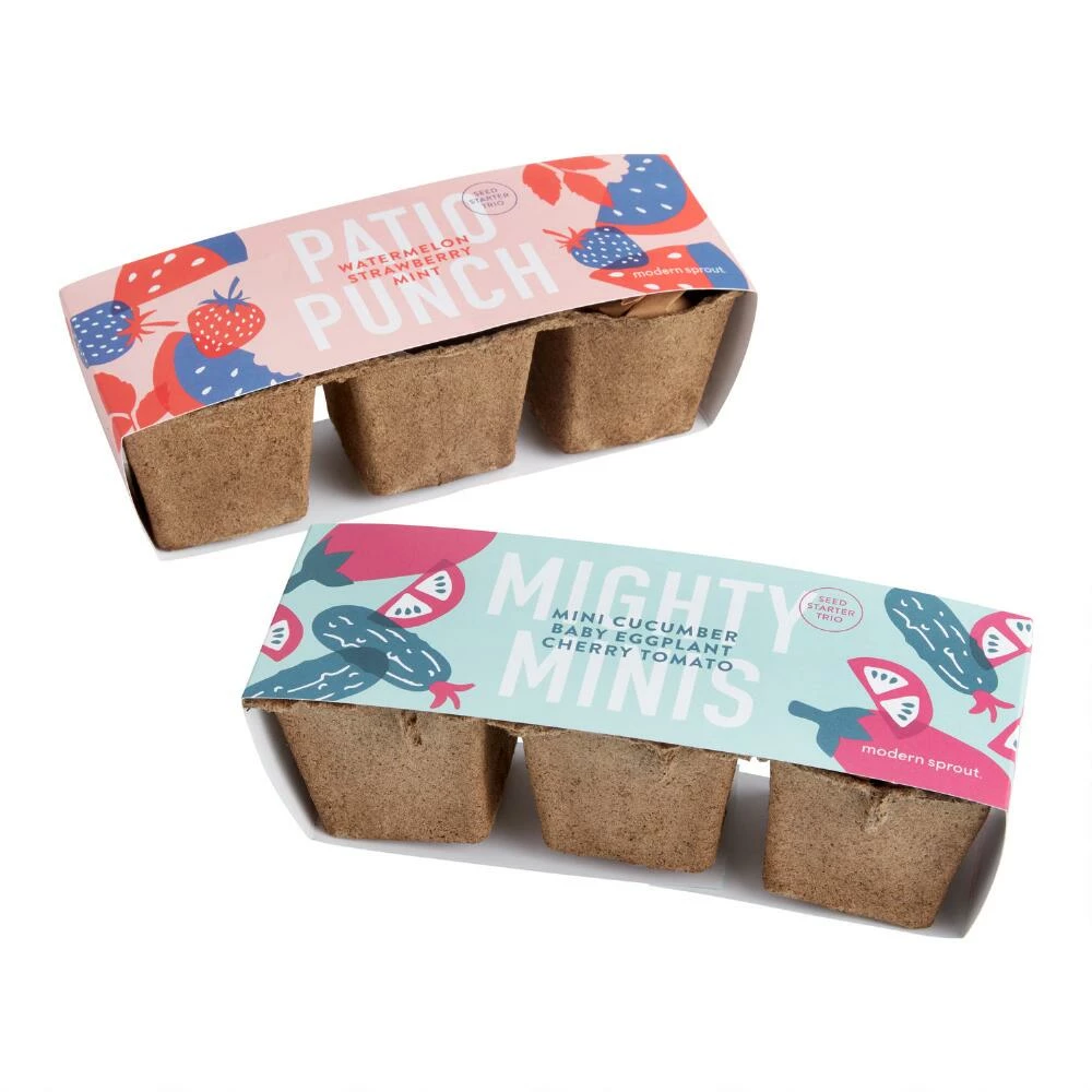 This complete seed starter kit makes it easy to grow a mini garden trio of non-GMO fruits, vegetables or herbs. Mighty Mini includes cucumber, eggplant and cherry tomato seeds, and Patio Punch includes watermelon, strawberry and mint seeds. Grow them in the CowPot and once a few sets of leaves appear you can transplant them into your garden or an outdoor planter. In a few weeks your chosen trio will be ready to harvest for salads or cocktails.