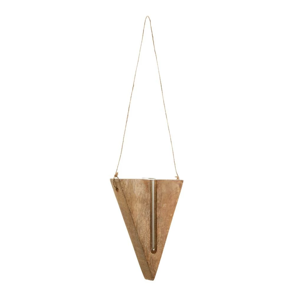 Our exclusive modern wall vase brings the beauty of nature indoors with contemporary style. It’s handmade in India with a modern triangular wood frame, exposed test tube vase and jute hanger. Perfect as a propagation station, air plant holder or single-stem floral display, we imagine a few staggered on a wall for a cool, current room refresh.