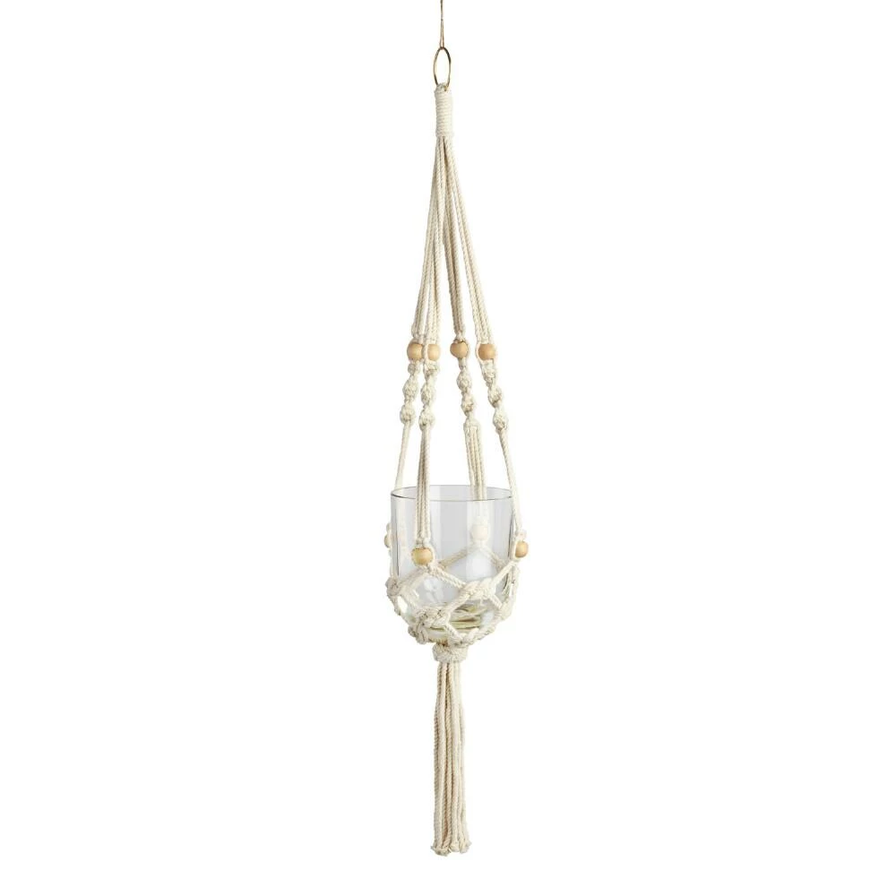 Our exclusive macrame plant hanger uses hand-twisted cotton threads interspersed with natural beads to form a cozy hammock for your plants.
