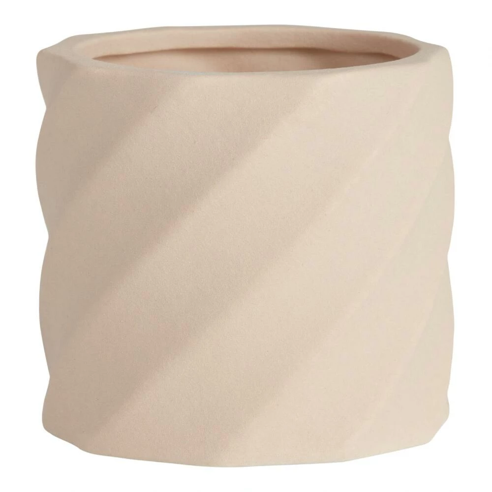 Our petite planter gets its sculptural beauty from unique diagonal ribbing. In a versatile natural tone, this textural ceramic pot makes a sophisticated home for any plant.