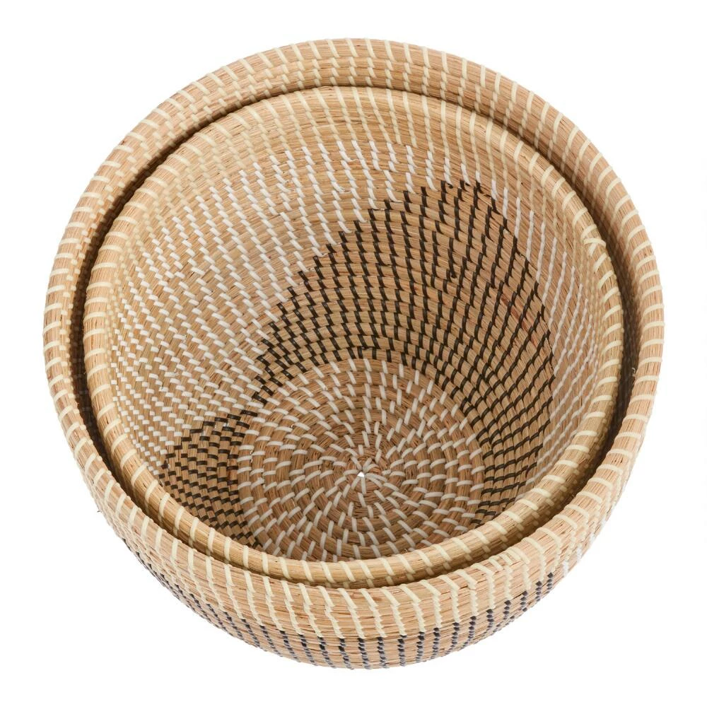 Natural seagrass weaves together with black and white recycled plastic to form the bold geometric patterns of our contemporary Nella basket. Sturdy and chic in two roomy round sizes, it delivers loads of clutter-catching capacity in statement-making style.