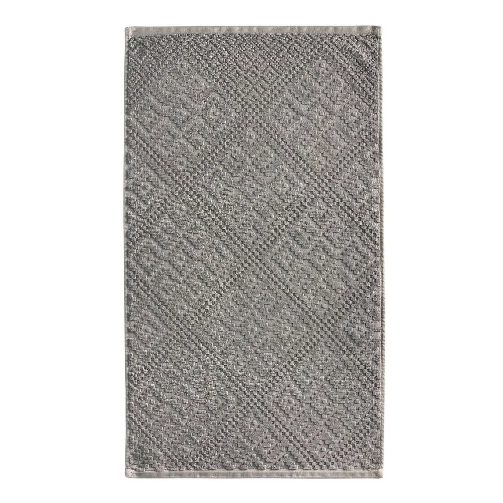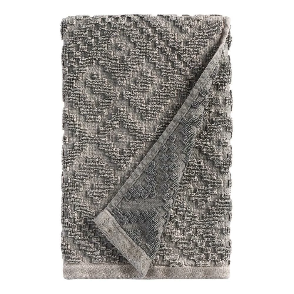 Our exclusive sculpted hand towel in charcoal gray features a stonewashed look and a diamond geo pattern woven in 100% cotton. Refresh your powder room with a sense of subtle sophistication with our Nova towel collection.