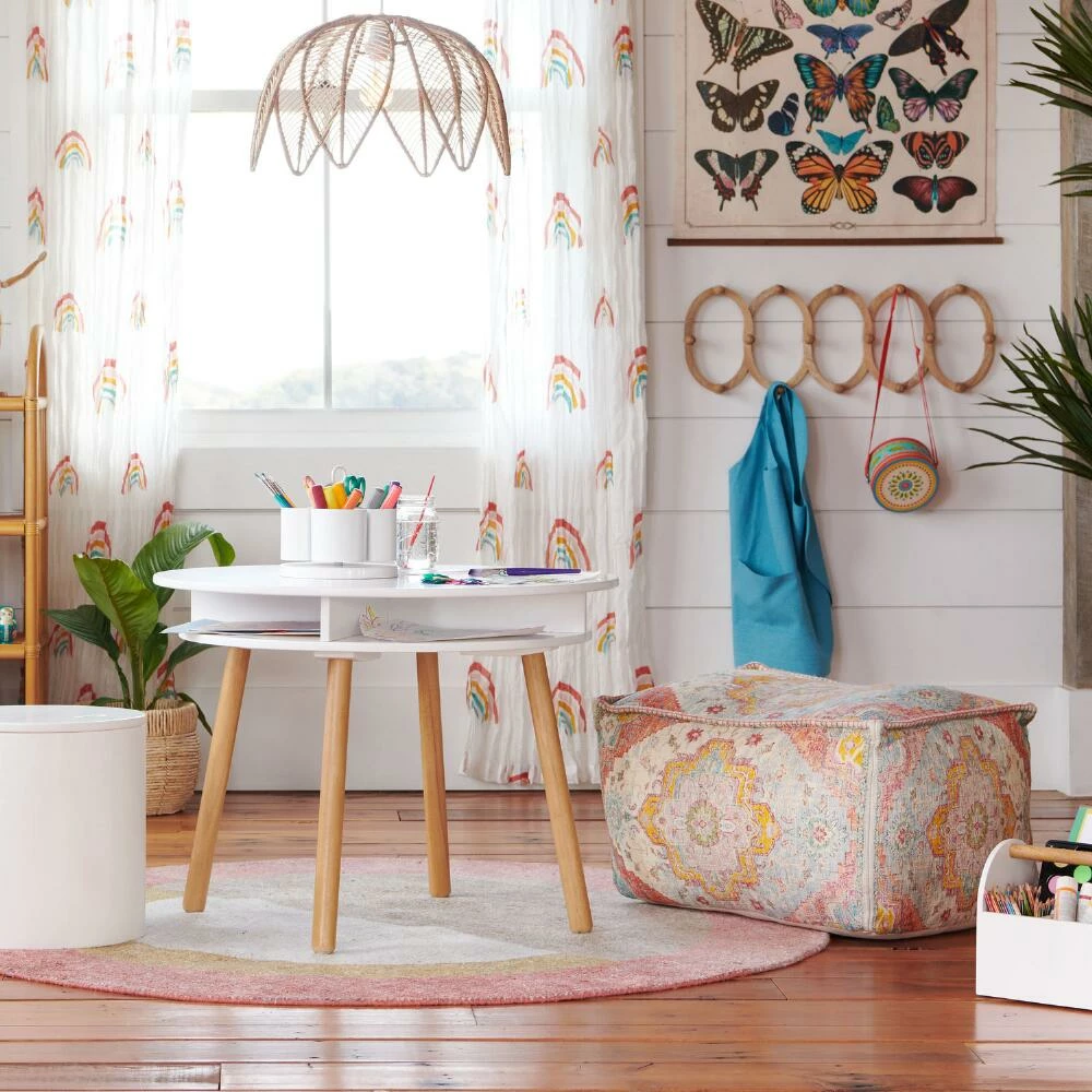With its digitally-printed vintage-rug pattern inspired by the design of traditional Persian rugs, our exclusive rectangular floor pouf has old-world charm that fits perfectly in modern spaces. Finished with a light-coral blanket-stitched flange, it makes a chic extra-seating option.