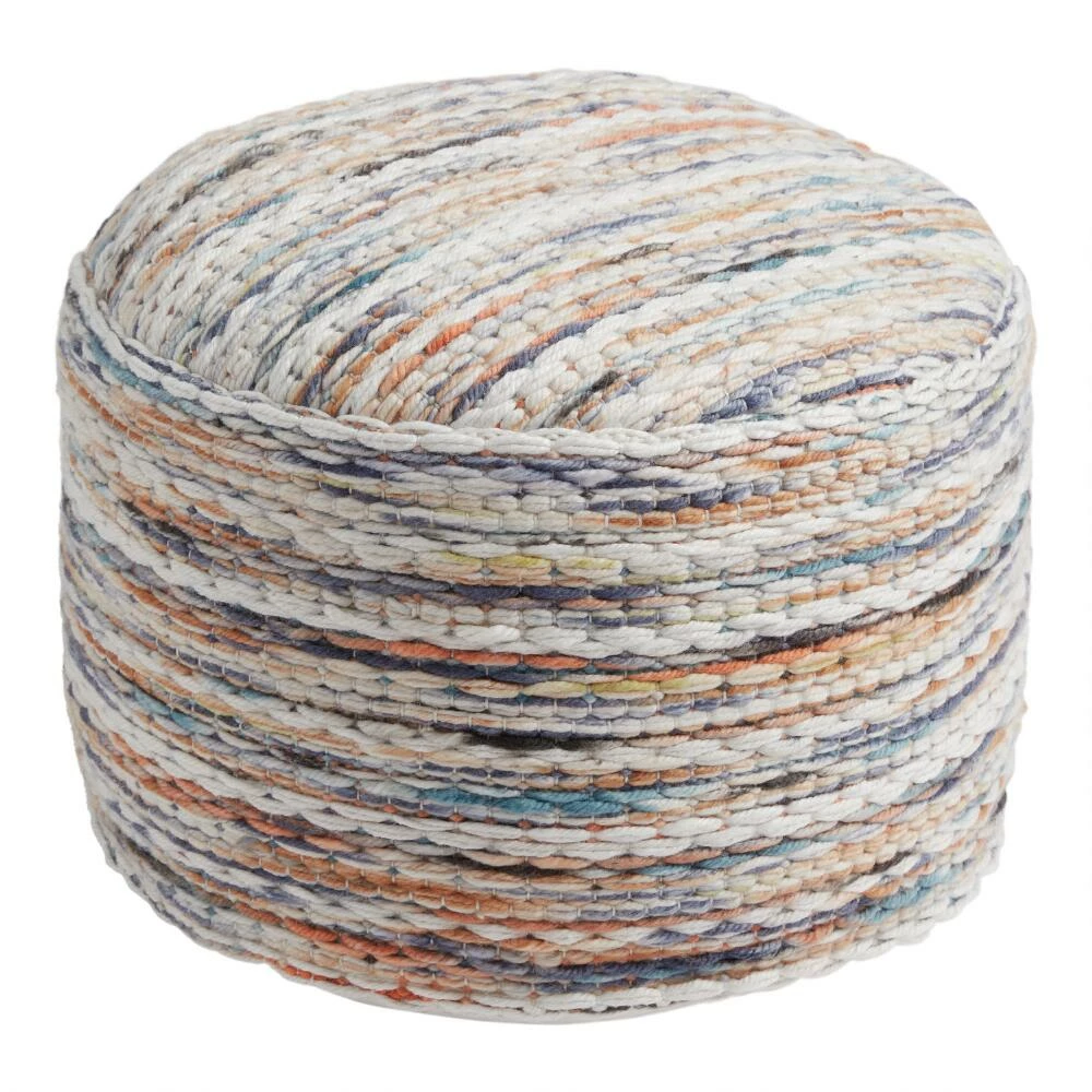 Handwoven in India with an innovative process that puts recycled water bottles to good use, this pouf can accommodate a range of home decor styles. From modern to beachy, the possibilities are endless whether it’s in your living room or used as extra seating on your deck. This stylish cushion is made with a playful mix of taupe, ivory, blue and teal with a solid base.