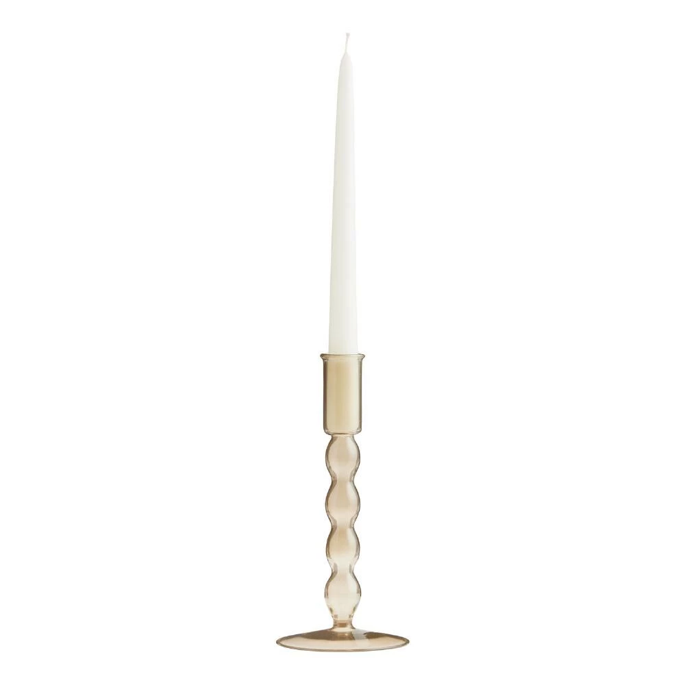 Crafted from lightweight but durable borosilicate glass that’s shatter- and heat-resistant, our exclusive candle holder has a chic smoky hue. With a simple contoured silhouette, it makes a striking and minimalist style statement paired with a plain white candle, or go for a more boho look with a taper in a contrasting shade.
