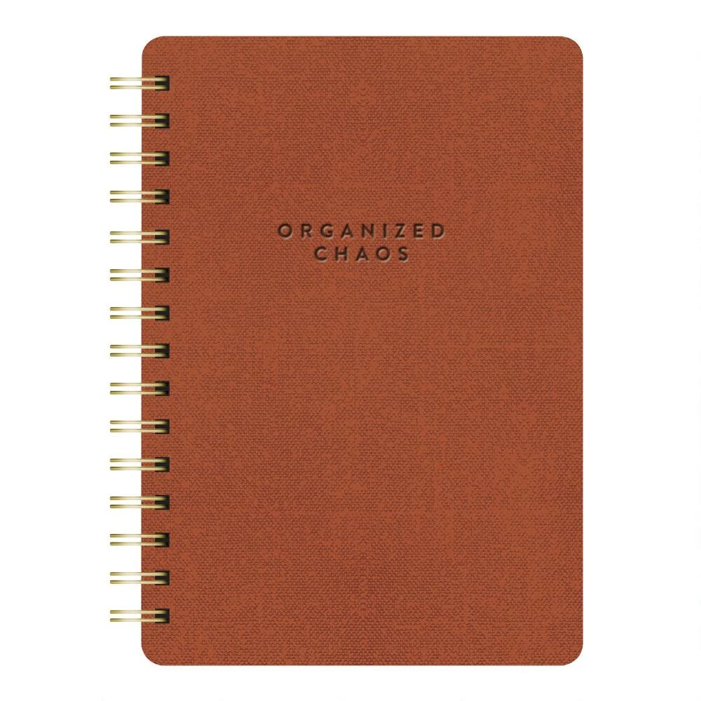 Contain your chaos in this spiral notebook from Studio Oh! featuring a sophisticated, minimalist faux-leather cover with debossed gold lettering. With an interior pocket for collecting loose notes, it has 208 lined pages for journaling, list-making and other everyday writing needs.