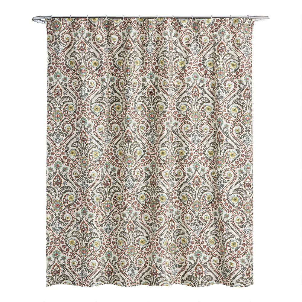 Printed with a botanical scroll pattern in shades of green with colorful highlights, our Treetop Shower Curtain brings classic elegance to the bathroom.