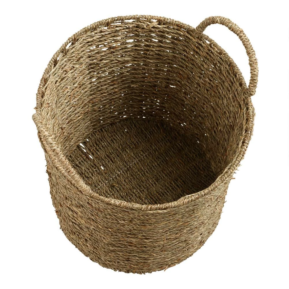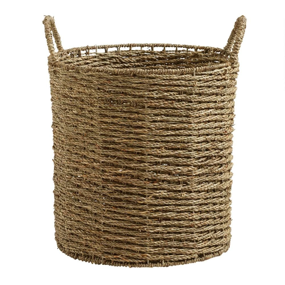 Our stylish tote basket from Vietnam is handcrafted of seagrass that’s twisted and woven around a metal frame. With a natural look and ample size, it’s perfect for storing towels, gathering toys or housing your favorite potted plant.