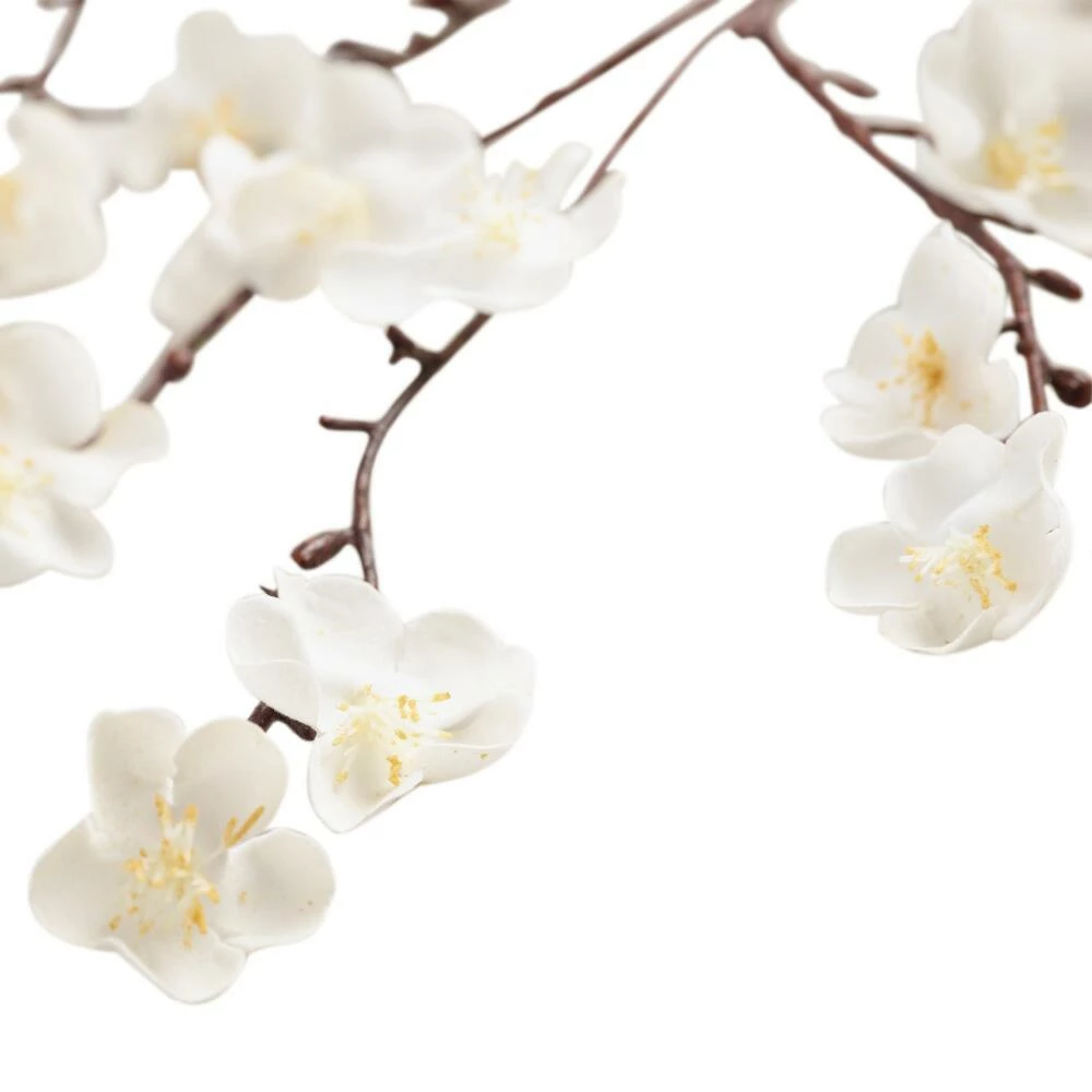 A classic subject of Eastern poetry and paintings, the plum blossom blooms with artistic elegance. Our artificial version features lifelike posable branches filled with delicate fake flowers in a snowy shade of white.