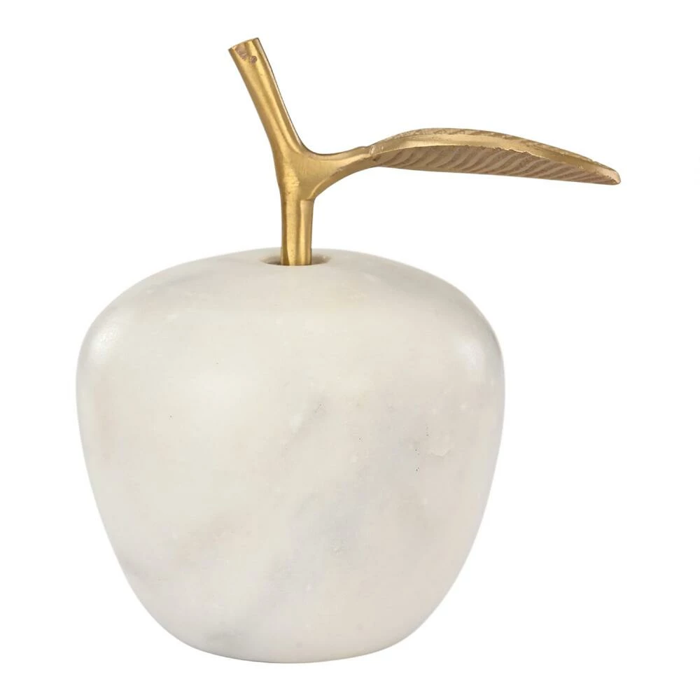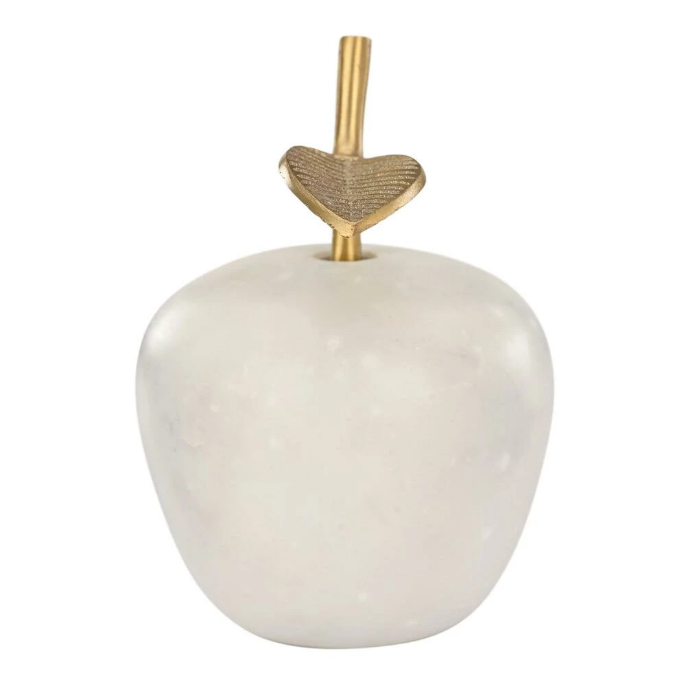 Accessorize your desktop with this charming apple-shaped paperweight crafted from natural white marble and finished with a matte-gold metal stem and leaf. Perfect for keeping loose papers in order around your office, it can also be used as a chic ornament on a mantel or shelf and makes a lovely gift.