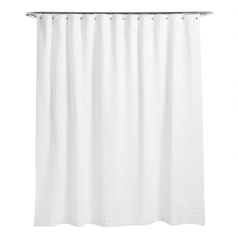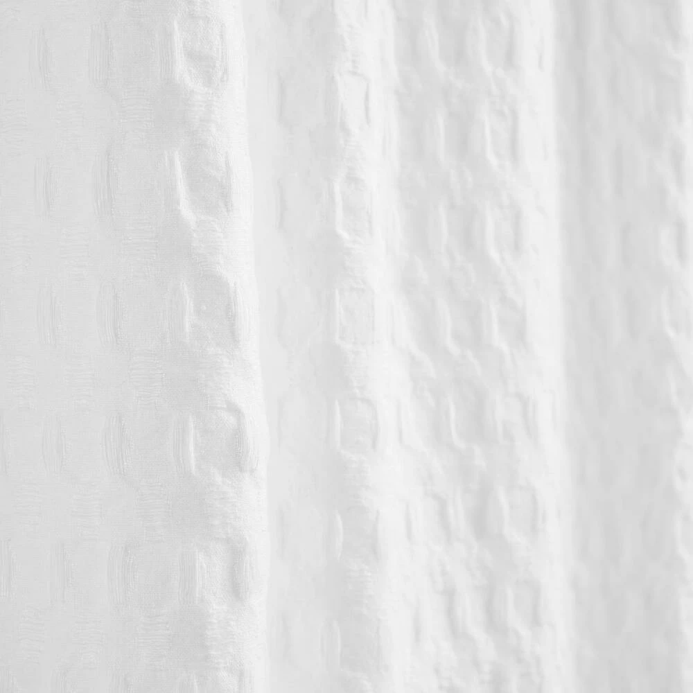 Get the luxe look found in the world’s finest hotels without the hefty price tag with our exclusive white shower curtain, featuring a wide waffle-weave pattern. The heavy 100% cotton fabric immediately turns your bathroom into a spa-day haven.